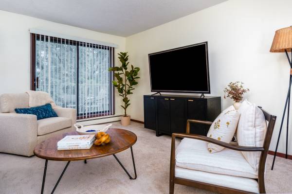 Living room, Dining room, Stove / Oven, Refrigerator, Dishwasher, Air Conditioning, Cable-ready, Paid Heat, Some Accessible Apartments On-Site.