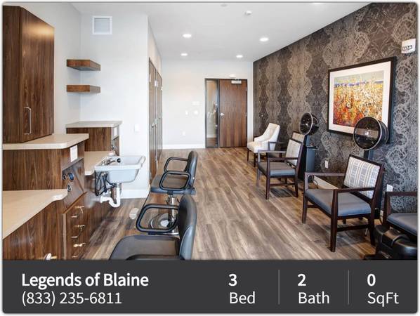 About the community: This is undoubtedly independent living at its finest. Start an exciting, new chapter in a well-appointed, maintenance-free apartment home with all the amenities you'll want, and all the conveniences you'll appreciate. The Legends of Blaine is committed to providing beautiful, secure & affordable housing - with amenities and the kind of attention to detail typically found in luxury apartment homes.