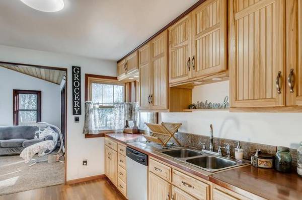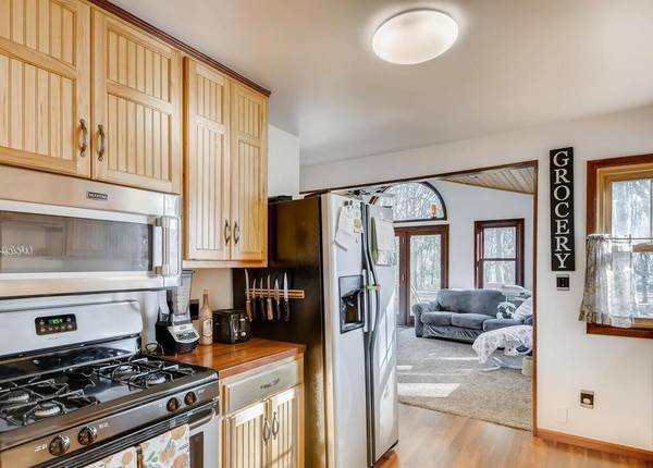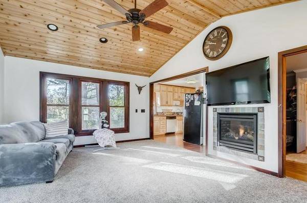 Spacious rambler on a large 1+ acre lot loaded with mature trees! This cozy home will give you both the up north cabin feel and the farmhouse feel as well. Large front porch across the entire front, updated kitchen, large dining, and a large addition on the back loaded with windows and a gas fireplace! A truly unique home you!