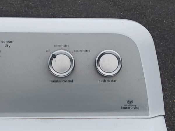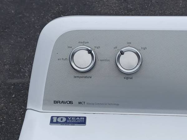 Nice Maytag Bravos high efficiency gas dryer. Newer model in good condition. Still works great so no issues and it even has a 10 year limited warranty through the manufacturer. Has a larger capacity sized drum with sensor drying. Delivery is available as well.