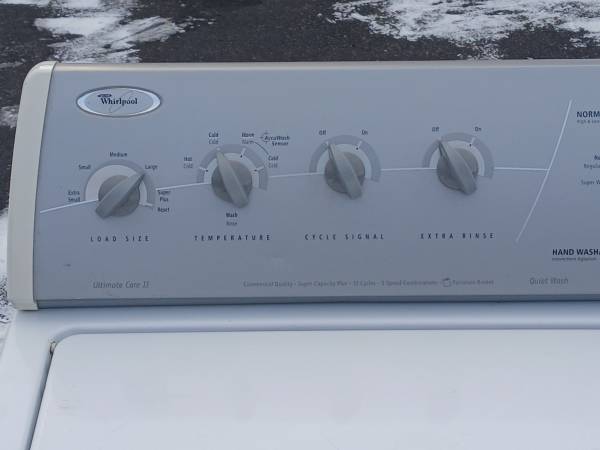 Whirlpool Ultimate Care super capacity plus model top loading washer. Good condition (some wear). Still works great so no issue. Lots of cycles and options. Includes hoses. Delivery is available as...