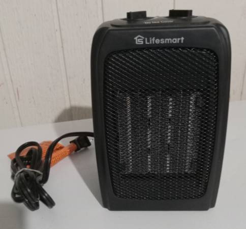 Electric Space Heater. 8 1/2" tall, 6" wide, 5" deep. $15 cash.