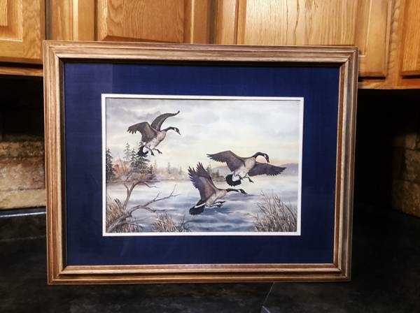 1) D. Smith - Landing Geese. Signed and numbered #360/580. Frame size is 21 x 27.