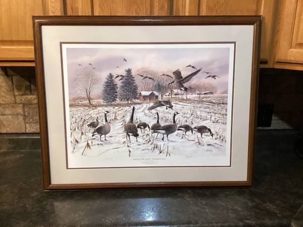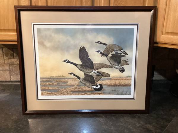 3) James C. Westall Jr. - Canada Geese-Deer Island. Frame Size is 25 x 30. Signed and numbered 21/5300. Year of production is 1984.