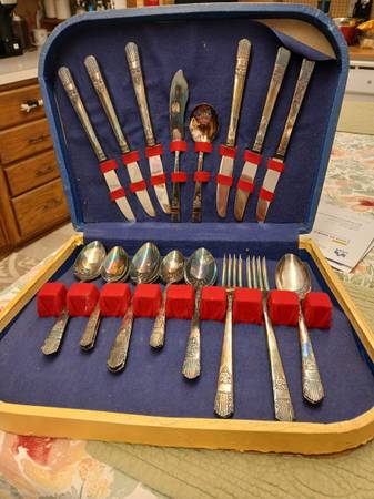Antique silver plate set. Call me at seven six three four three four nine seven zero eight.