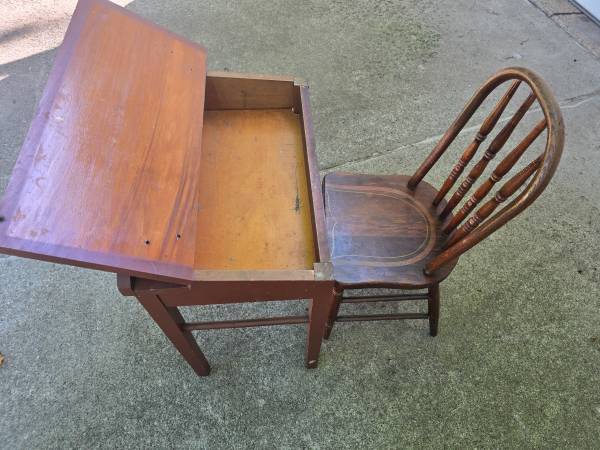 Antique Children's Desk and Chair Chair is approximately 14 in tall Desk is approximately 24 in tall Cash only