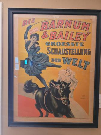 Original Oldest Barnum & Bailry poster on record Professional framed Won't find another or older 1895 Very rare poster Best cash offer will be considered Thanks Travis