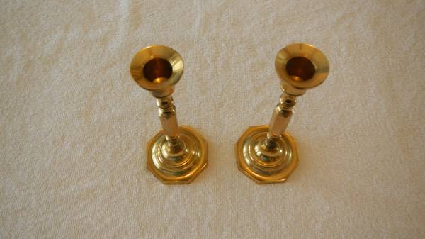 Beautiful. Set of two matching candle holders 7 1/2 in. high. 3 in. OD base. 1 1/2 in. top. Fits 3/4 in. thick candles and taper candlesticks. Gift. Antiques. Collectibles. $35.00.