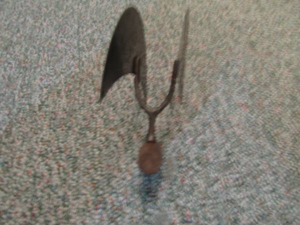 Old but still usable double blade hand chopper with a single wood hand grip and 2 crescent shaped blades. The blades are 7 inches long and they are just under 2 inches apart. There is a little surface rust on the blades from sitting for quite a while, but they should clean up easily. I found another listing on Ebay for $17.95 that looks like a twin to this one. There are no marks or names to indicate the manufacturer, but it closely resembles hand choppers from the 30's and 40's which would make this around 80 years old or more.
