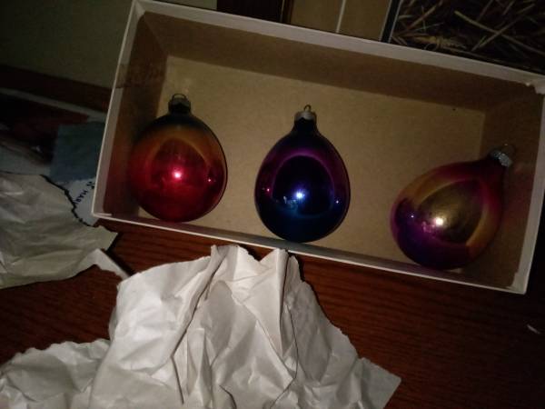 Rare set of 3 pear egg shaped shiny brite ornaments