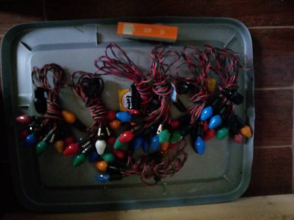 7 Holiday strings of indoor lights and each string has 7 lights.