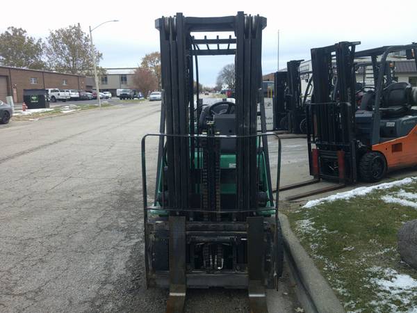Mitsubishi 6K LB. Capacity Forklift, Model # FGC30N, Traction cushion tires, propane gas, lifts 15'-6" high, side shift, 48" forks, lbr., digital display, back up alarm, good seat, no leaks or issues, 9313 hrs., ready to work today, we can deliver, propane tank not included, asking $8940., contact is Tim.