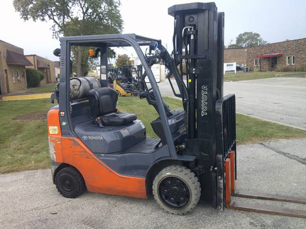 5K LB. Capacity Toyota Forklift, Model # 8FGCU25, propane gas, traction tires, 2905 hrs., quad 4 stage mast, max lift height is 21'-6" high, side shift, 42" forks, lbr., 4th function lever, plumbed to the carriage, lights, strobe light, back up alarm, digital display, premium seat, fan, front & rear blue safety spotlights, onboard fire extinguisher, ideal model for warehouse with tall racks, we can offer delivery, asking $12,890., contact is Tim.