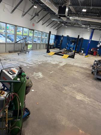 Up for sale is a unique 6-8 bay shop. ( 2 extra lifts can be added. ) There are two sections to the shop, one section has 4 bays and the other has 2 lifts with room for 2 plus additional cars. The far section also has its own store front and can be sectioned off to have a separate business if desired.
