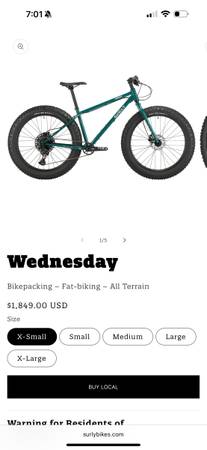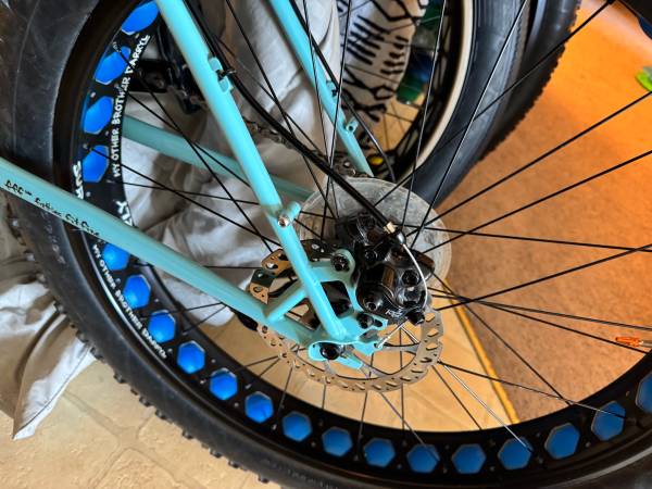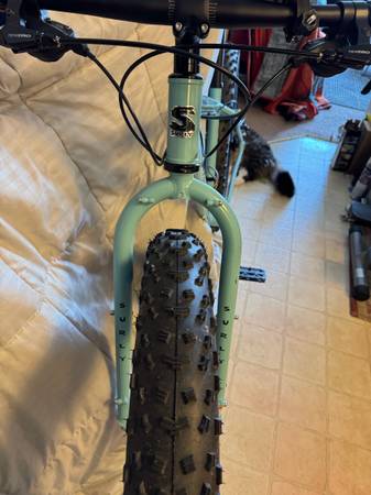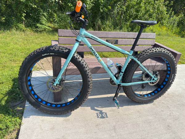 Surly Wednesday fat bike medium size frame in excellent condition with upgrade hand grips WTB saddle forty pedals TOP DISPATCH Custom Text Bicycle Headset Cap - new chain recently wider hand bars, the tires almost brand new fresh tuna very good breaks it shift very smooth the bike in new condition. Need nothing located in Champlin retail about $2000