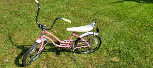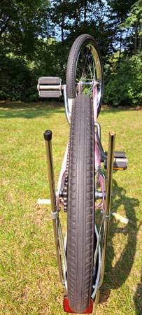 Excellent condition. All original. This was purchased new in 1984 and is used and has been ridden, but has been well cared for and has always been stored inside. Original tires show wear and some cracking, but they do hold air. Seat is in good condition. Hand grips are in good condition. Very little, if any, rust to be found. Decals show cracking, see photos. Comes with original owners manual. Also comes with a white woven basket that mounts in front of handle bars, (not shown).