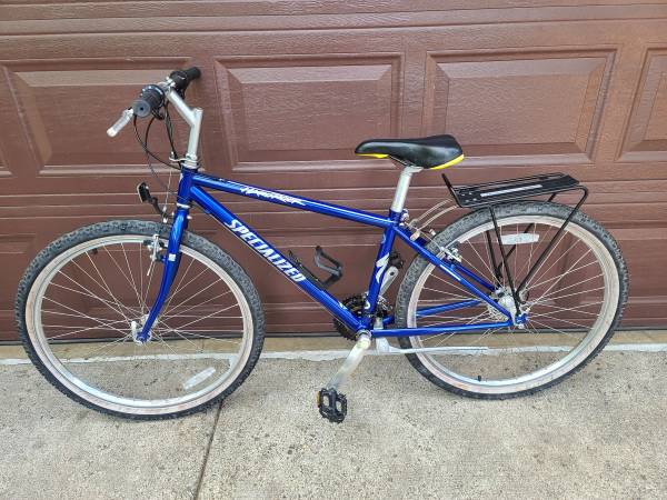 Specialized Hard Rock 21 Speed Hybrid Mountain Bike 15 Inch Bicycle. 26 Inch Weinmann 519 Aluminum Rims. Blackburn Trail Rack. Cro-Mo Tubing. Clean and Ready to Ride. See Pictures.