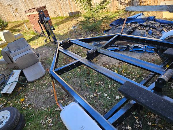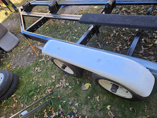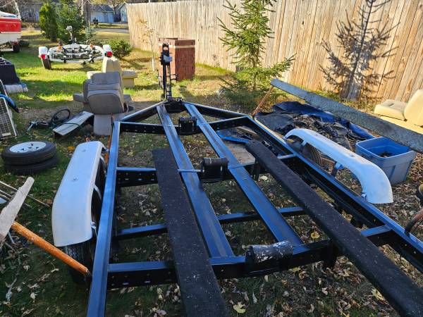 Great shape Putting 12 inch tires on it Lights worked 2 inch ball 23 feet total length 70 inches between the fenders Pulls great Very heavy duty trailer Well made Tee Nee