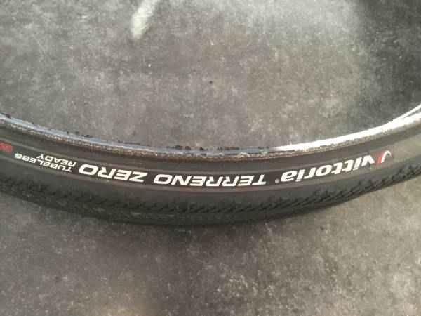 One Terreno tire available. Can be used with or without tubes. 74mi. The mould centerline can still be seen, as well as the nobbies. No issues. No cut, tears, abrasions, etc. I switched to the same tire in a different size. You might think this tire is your 'road' option for your gravel bike. Yes but…These tires are way more capable off the road then expected good for gravel level 1, 2, & some 3 if you are a decent bike handler. They really stick well through semi-loose cornering…a nice surprise.