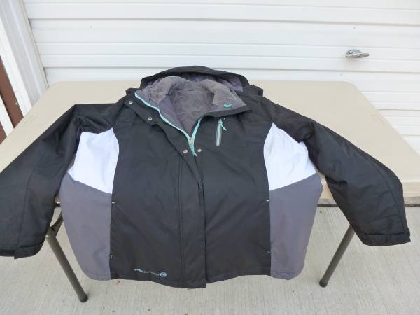 ladies 3-way coat with removable hood, removeable inner jacket linner