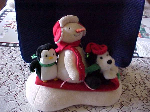 2007 "Fun With Sledding". There is a snowman, penguin and dog on the sled. Music works and has great action. $20.00