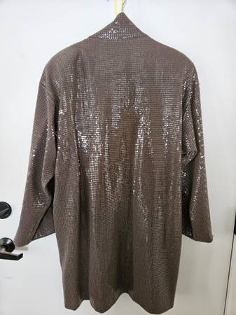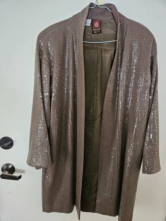 BEAUTIFUL KNEE LENGTH BEIGE SEQUIN JACKET L TO EXL EXCELLENT CONDITION $50