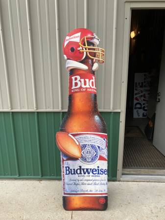 Budweiser Bottle Football Advertisement made entirely of cardboard in excellent condition.