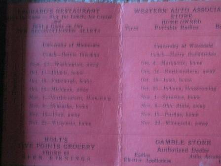 This is an old pocket schedule from 1941. It does have a few creases. Contains the schedule of multiple teams such as Wisconsin, Notre Dame, and Northwestern.