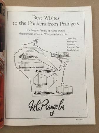 1. Packers vs New York Giants - September 9, 1967. Fran Tarkenton on the cover. This program has a small tear on the bottom of the binding, some spots on the first page, and two pages are stuck together right at the top so there is a crease in one page.