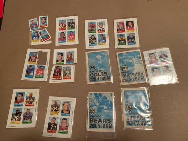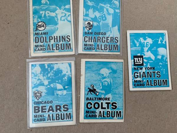 Lot of 5 1969 Topps NFL Mini Albums and a bunch of stamps. The albums are: