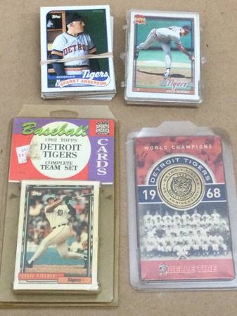 3. 1989, 1991, and 1992 Topps baseball cards team sets - 1992 is in the package. I did not confirm go through the two open years to confirm that they are all there. There are 27 in the 1989 pack, this pack has a rubber band around them. The 1991 set has 26 cards and in a plastic. These cards are a little bowed.