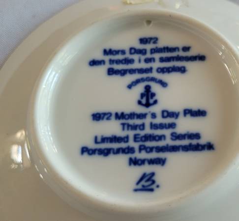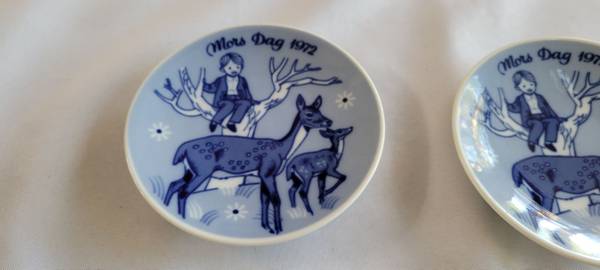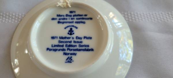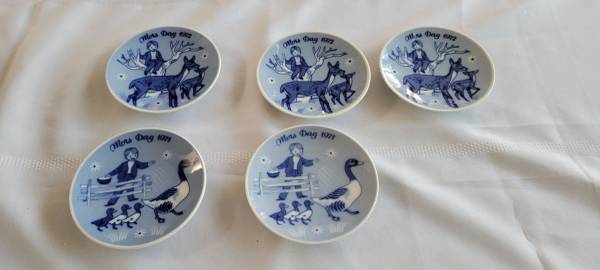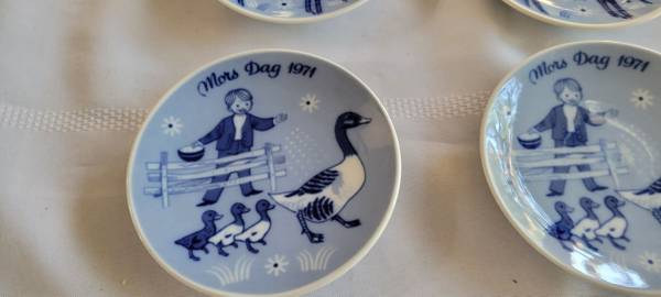 Porsgrounds, Norway Mother's Day pattern plates. 2-1971 plates and 3-1972 plates. No chips or cracks. About 5.25" wide.