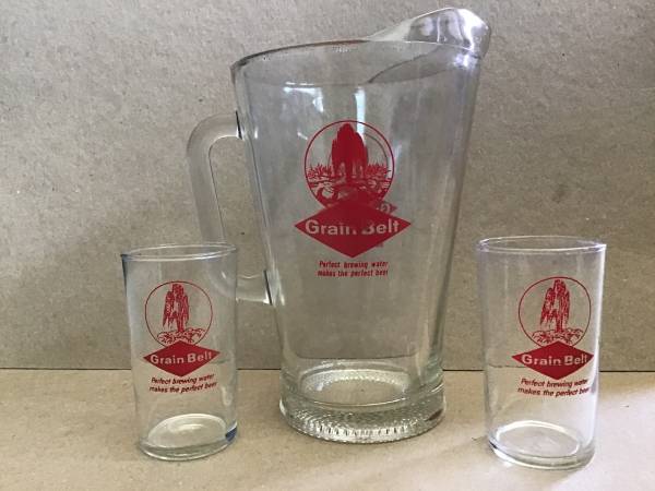Grain Belt pitcher with 2 matching glasses. All in great condition.
