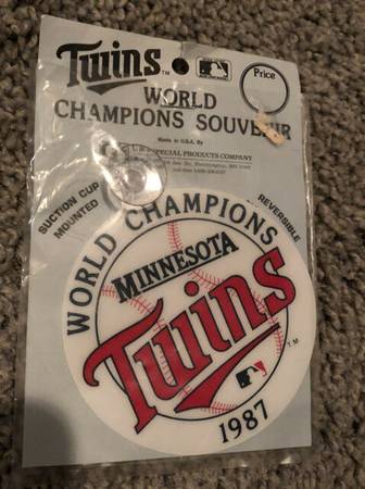 Lot of buttons from the 1987 Championship year. All are in great condition. 10 different buttons and one window decal.