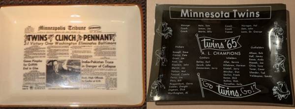 Lot of two 1965 Minnesota Twins ashtrays or dishes: