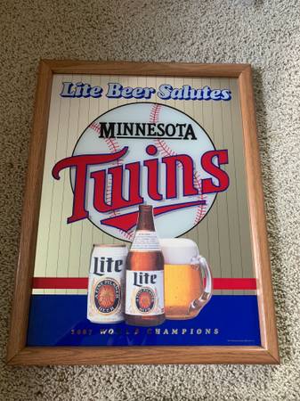 Minnesota Twins Miller Lite mirror saluting the 1987 World Series Champions. Measures 21.5" x 16.5" In great condition.
