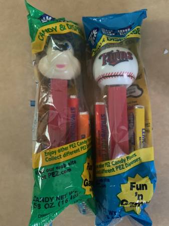 Two Pez Dispensors - one of a Twins baseball and one of T.C. Bear. Both new in the package