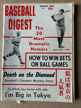 8. August 1962 - Babe Ruth and Home Run Baker on the cover - Wear on spine. Ripped on bottom of back cover and has price tag