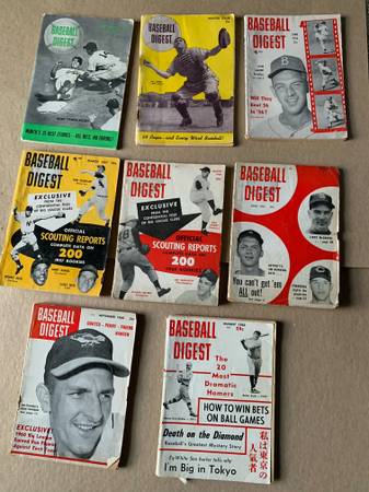 Lot of 8 Baseball Digest magazines from the 1940's to the 1960's:
