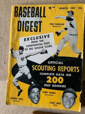 4. March 1957 - Tom Flanigan, Woody Held, Larry Raines, and Casey Wise on cover - Some wear around the cover edge and spine. Small rips in first few pages. Tear and price tag on back cover