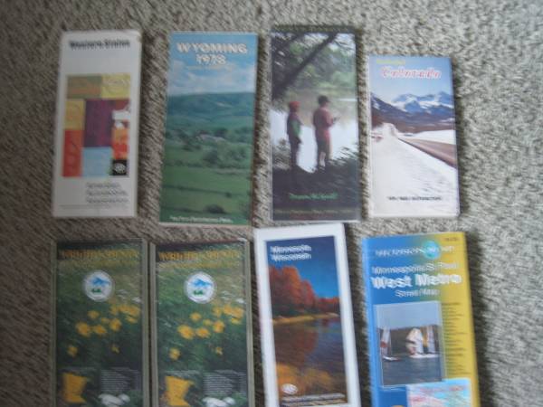 Group of 8 older road maps. One is a duplicate, so 7 different ones. All in pretty good condition: