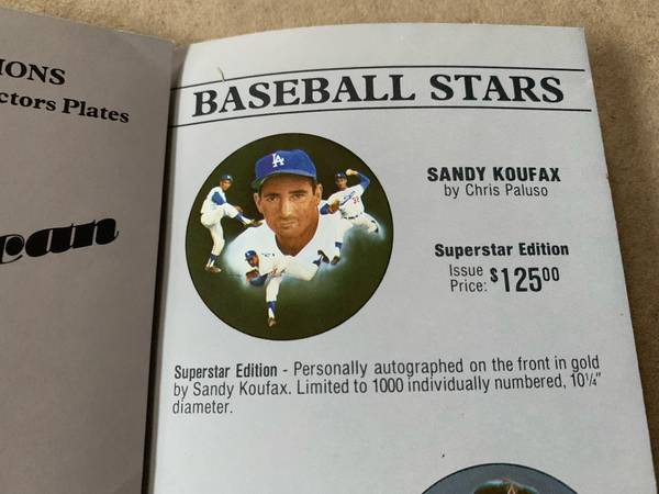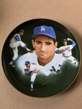 Sandy Koufax plate by Christoper Palusa. These plates are hand signed by the player and this one is #766/1000. It is 10.25" in diameter. Koufax played in the 1965 World Series for the Los Angeles Dodgers against the Minnesota Twins. He was the World Series MVP and pitched in game 2, game 5, and game 7. I also have the order form that was for these plates. Comes with original box.