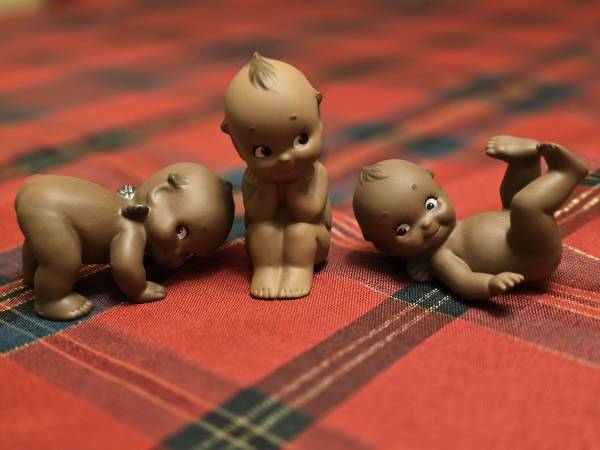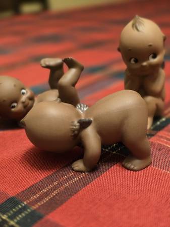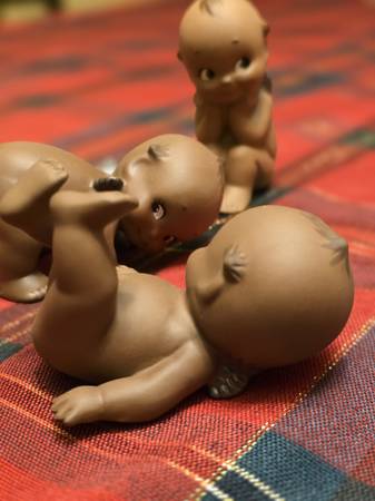 Set of 3 1992 Vintage Jesco Kewpie Doll African American Black Angel Figurines 3"