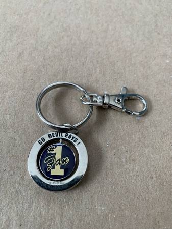 Two different Tampa Bay Devil Rays Pins. One on a card that says Inaugural Season 1998. The card has some creases. The second one is generic. Also, a key chain that says #1 Fan.
