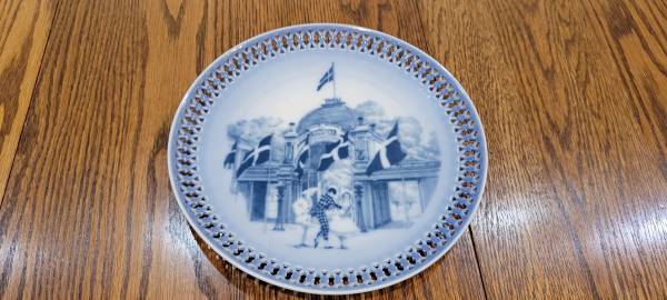 Tivoli Main Entrance Copenhagen Plate. The first motif in the Peter Heering series. 8.5-inch decorative wall plate. Lattice edge.