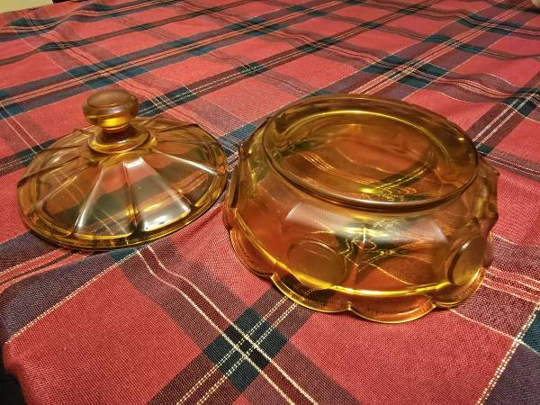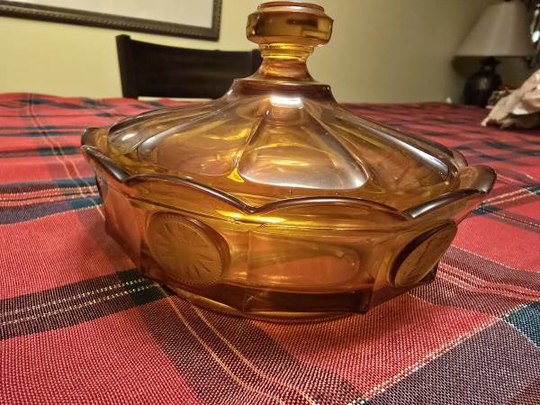 Vintage Fostoria Amber Coin Glass 6.5 inch Candy Dish with Lid