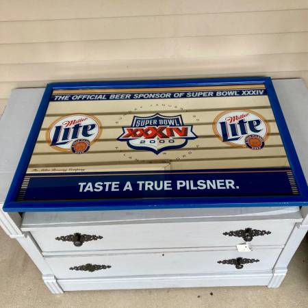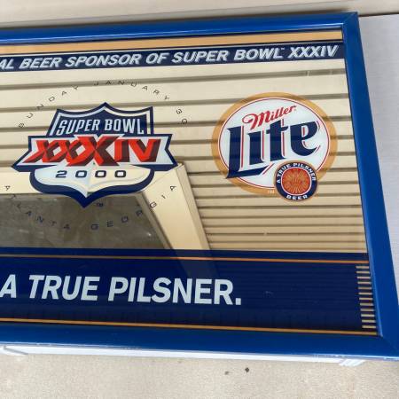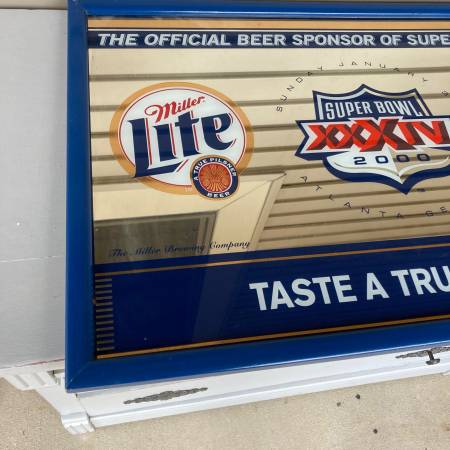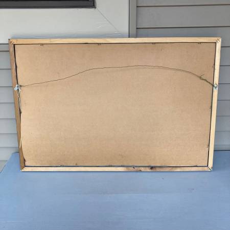 Outside of frame measures 32 x 21 inches. Frame shows some normal wear. Mirror could use a good cleaning but is excellent condition otherwise. The lines in the mirror are just the reflection of my house siding when I took the pictures (hard to take a pic of a mirror without a reflection). Pick-up in North Branch.