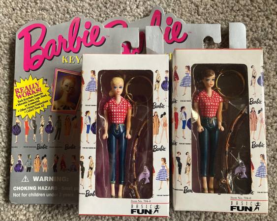 Pickup near the Village Inn in Wyoming MN. Awesome Basic Fun brand keychains. I had over a dozen of these and have sold most of them. Selling these two fishing Barbie keychains together for $10 ($5 each). Awesome for a collector. Nonsmoking home. New in package, I’ve had them on display with my other Barbie items. Packages have some bends and such as shown. I remember picking these out nearly 3 decades ago at Target trying to find the best boxes they had. Many items listed if interested.