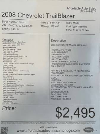 2008 chevrolet trailblazer awd lt for sale - Cambridge, MN -...