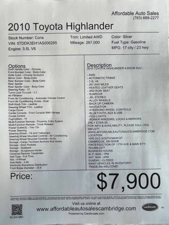 2010 Toyota Highlander Limited for sale - Cambridge, MN - craigslist